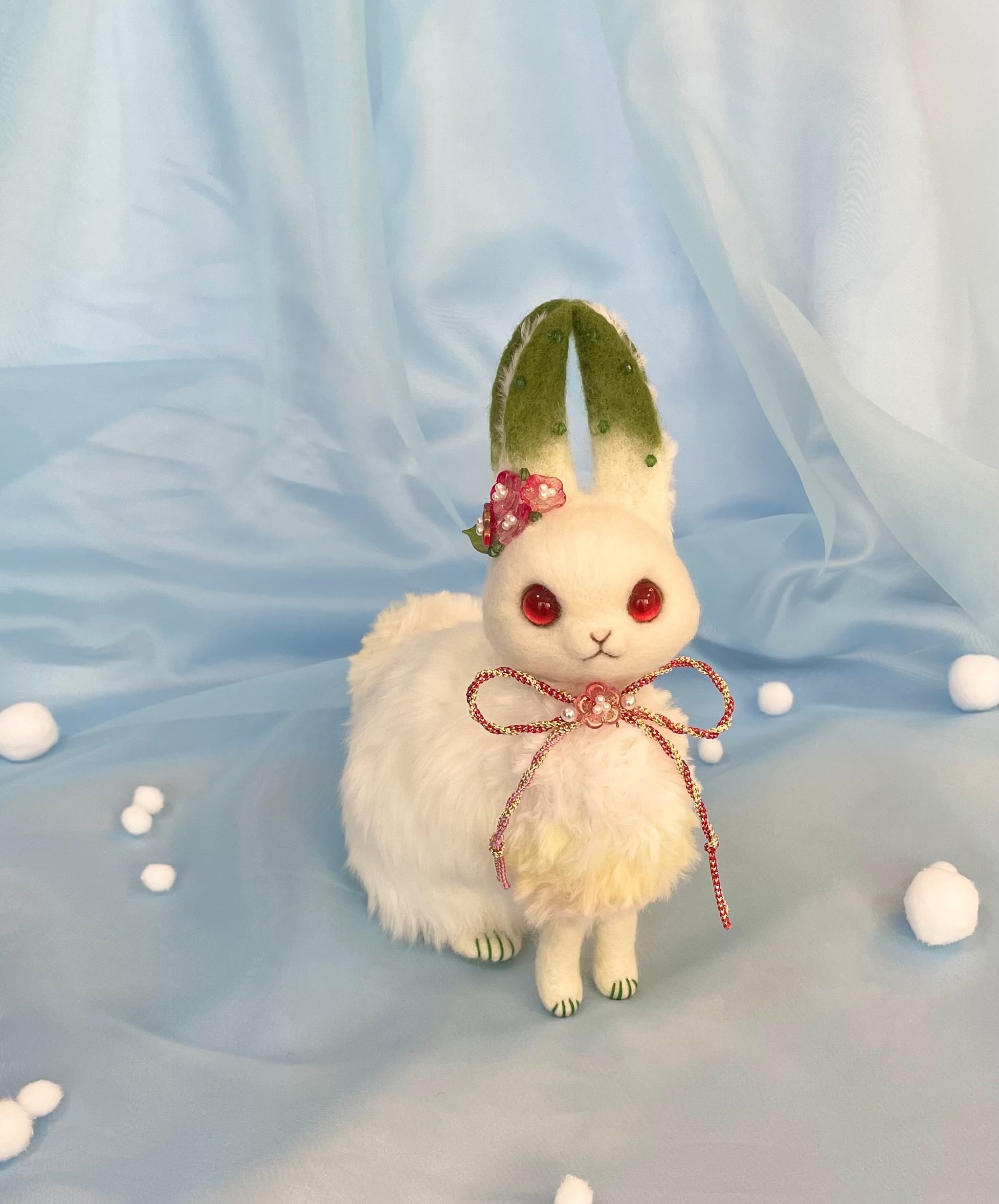 羊毛フェルト作品です。デリケートな素材で出来ていますので優しくお取り扱いをお願いします。植毛してある毛やおひげは引っ張らないで下さい。ハンドメイド作品なので至らない所があるかと思います。ご理解頂ける方のみお迎え頂けますと幸いです。